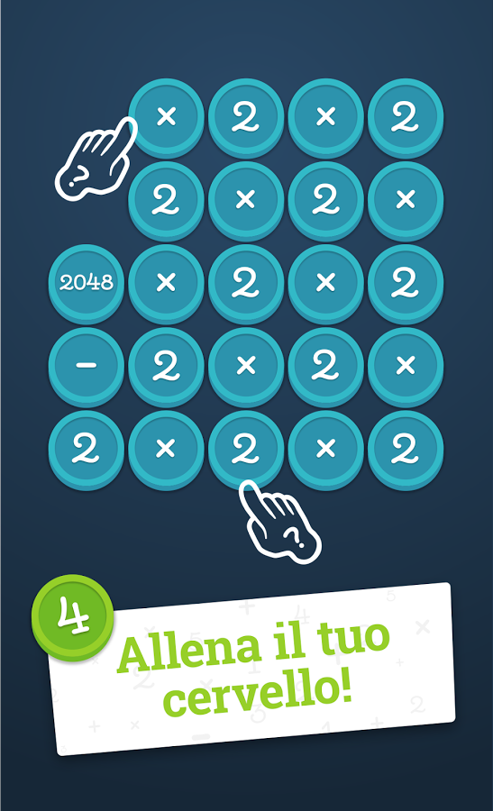 Scopo del gioco è quello di effettuare operazioni matematiche in maniera tale che l’operazione dia come risultato 0.